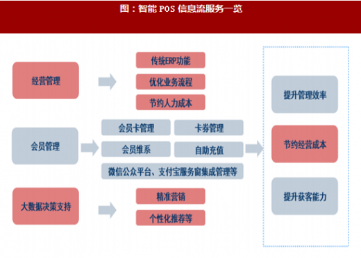 智能POS由于搭載了安卓系統,不僅僅是支付入口,而且還是一個功能強大信息的收集、分發、處理平臺,能夠提供豐富的軟件服務。一直以來,廣大小微商戶的最大痛點都是如何提升經營效率,節約成本,同時提高自身的獲客能力,而智能POS憑借能夠深入商戶日常經營業務的優勢,可以針對性地為商戶提供經營管理優化、用戶體驗改善、以及營銷渠道拓展等服務。SAAS模式具有便捷靈活,投入較少、功能豐富的特點,為智能POS提供了絕佳的應用服務形式。